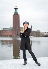 Vändbar lammskinns kappa i en figurnära modell, gjord i Stockholm av Amoress Stockholm av de finaste fårskinnen. Du kan ha den med mocka ytan utåt eller med den sidan som kallas är ull sidan. För närvarande finns det bara en kappa i svart i storlek S och en flerfärgad i beige/bruna färger i storlek M, se bilden. Vi kommer att ha ett produktions stopp under hösten och vintern 2025, sen får vi se. Så det är först till kvarn, som gäller på de här ytterst fina kapporna. Leveranstid varierar men mellan 1-2 veckor, beroende på vart den ska skickas till.