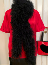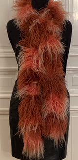Boa i tibetlamm. Finns i två färger och är gjorda av Amoress Stockholm här i Stockholm. Den finns i svart och två olika terra cotta färger i samma, se bilderna. Leveranstiden beror på vart den ska skickas till, men ca 1-2 veckor.