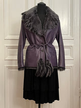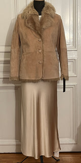 Mocka eller lammnappa kavajer med fårskinns krage endast i storlekarna S och M. Gjorda av Amoress Stockholm i Stockholm av finaste kvalitet i lammnappa, mocka och fårskinn. De är varm fodrade, så att du även kan ha dem på vintern. Den knäpps med knappar. De har skärp i midjan, som man kan använda eller inte. De finns endast i 3 exemplar, det är de som är på bilderna.