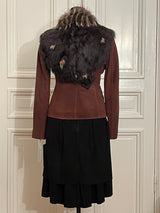 Den här jackan i finaste lammockan och fårskinnen är gjord i Stockholm av Amoress Stockholm i bruna färger och i storlek S. Den är varm fodrad. Den stängs med en dragkedja, som går både upp och ner, för flexibilitet.
