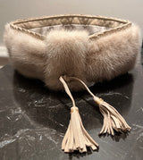 Headband in mink made in Stockholm by Amoress Stockholm of the finest SAGA mink skins. The headband is ca 5 cm broad and ca 57 cm around the head. We have it in 3 different colors brown, grey and beige mink skins. The headband has a little elastic part in the back, so it will fit both people with a smaller or bigger head.The delivery time is 1-2 weeks depending on where You live.