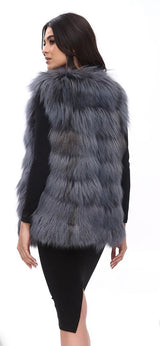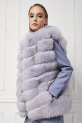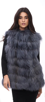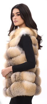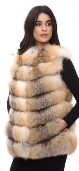 Fox vest with the skins horisontal. It is made of the finest and certified Fox skins from Finnish farmers and SAGA Fox. It´s made to order and you can get it in all sizes and i many colors. You can get it in the colors you can see on the photos and white/brown, black/white, red, light pink or black. The delivery time is 2-4 weeks due to the range of skins at the moment. Don´t wait until the last minute to order your fantastic new vest, because the delivery time will be longer around Christmas and New Years Eve.