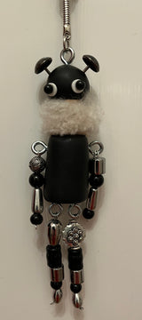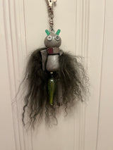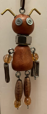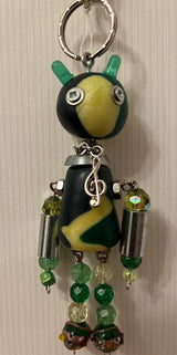 This is a bag charm or a keyholder, that You can also hang on the wall at home if You like. They are handmade of different materials like clay, glass beads, metal and in real leather or fur sometimes. They are made in three different sizes; mini, midi and maxi. They are made of Carina Andersson and everyone are unique, with different numbers and names. Mini Robots are between 11 - 13,5 cm long. Now during the winter some of them comes with a detachable fur vest in Mongolian lamb skin. The delivery time is 1-2 weeks depending on where You live.